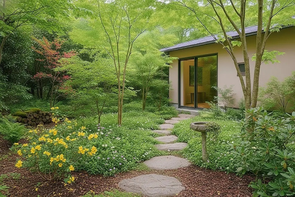 当事務所では、一つひとつの庭園や緑化空間は、街全体をつなぐ大切な拠点と考えています。「ともにわ」が広がることで、街全体が自然と共生する環境になることを目指しています。